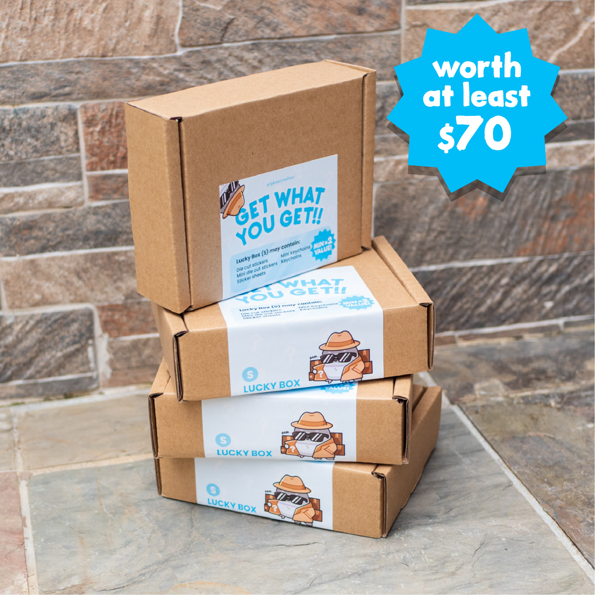 Lucky Boxes come in 3 sizes, with each box containing items with a minimum of 2 times more value!
