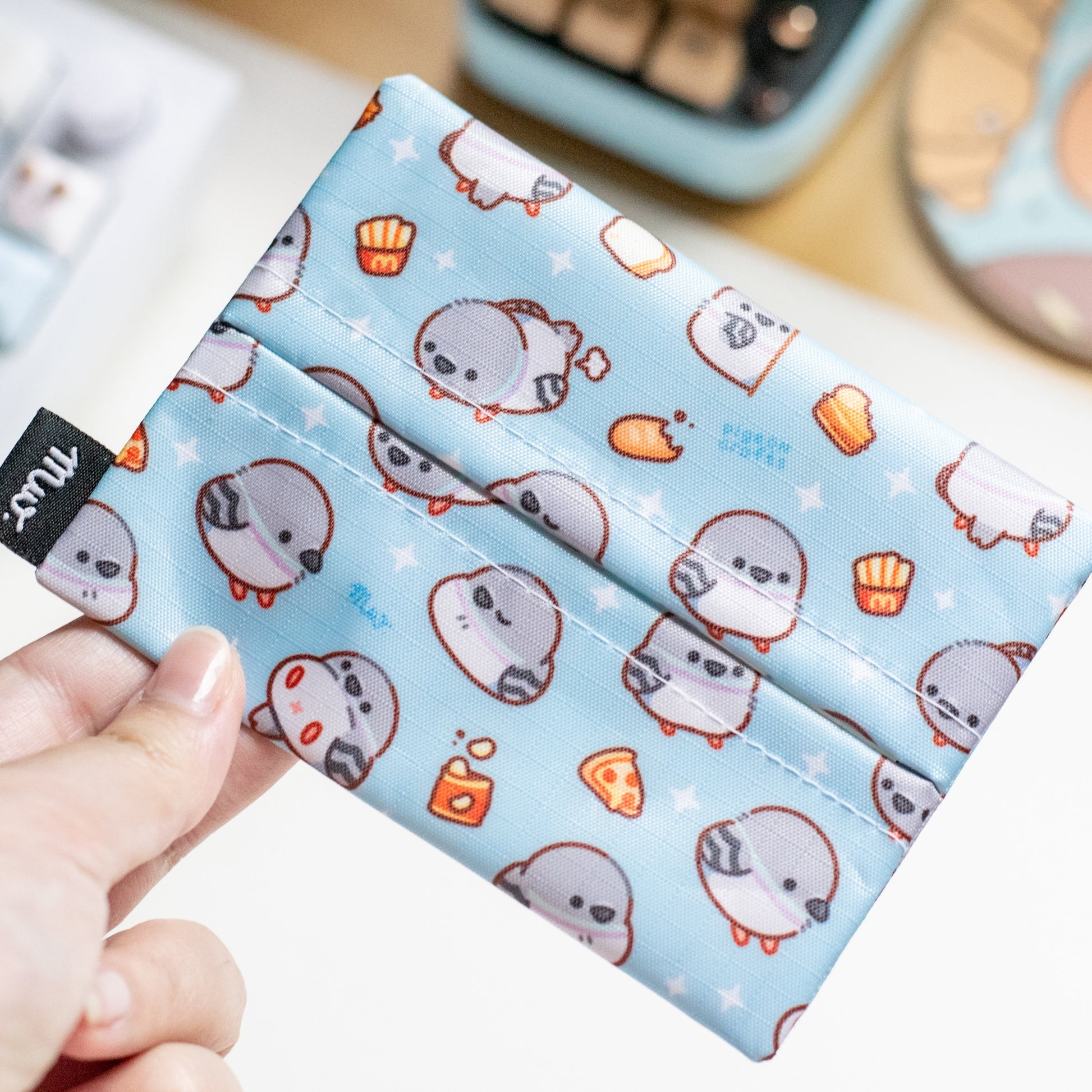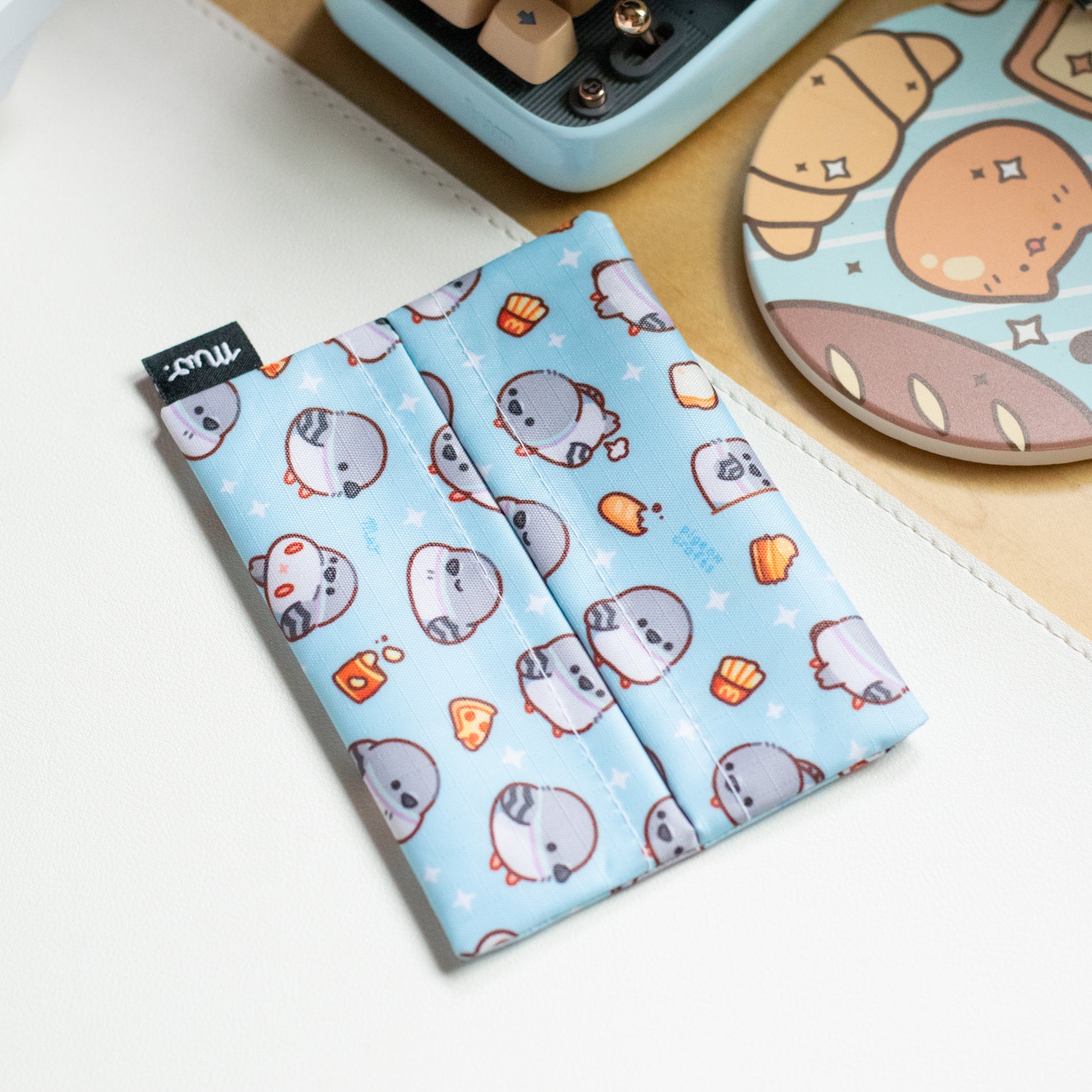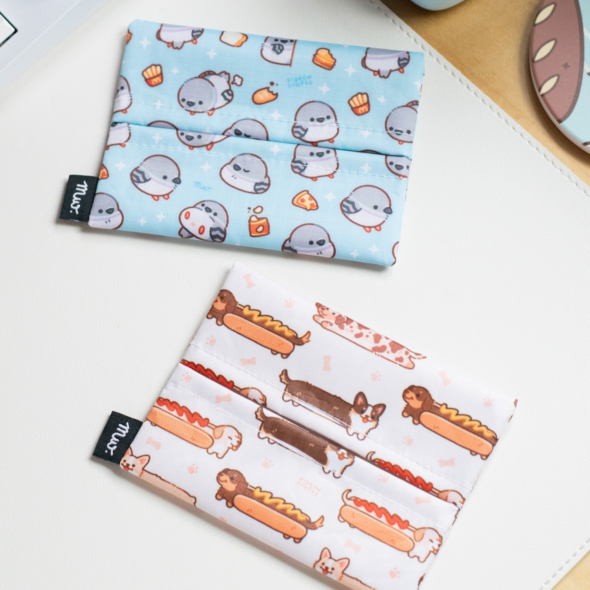 A quirky patterned tissue pouch for your tissue packets, featuring Pigeon and all their favorite carb-loaded snacks🍕