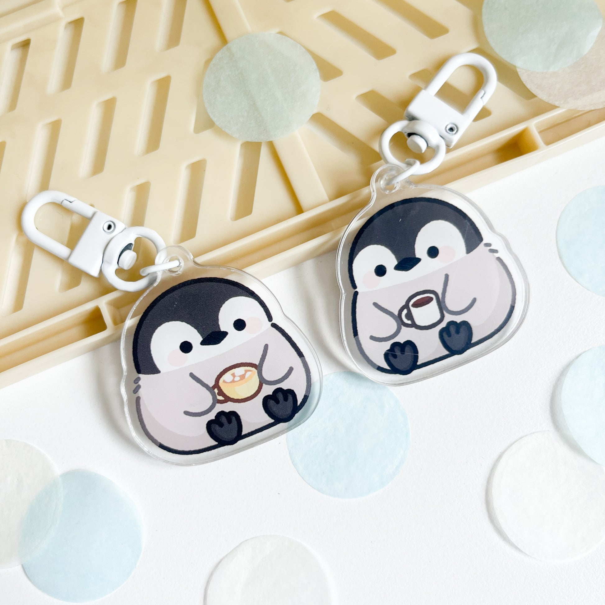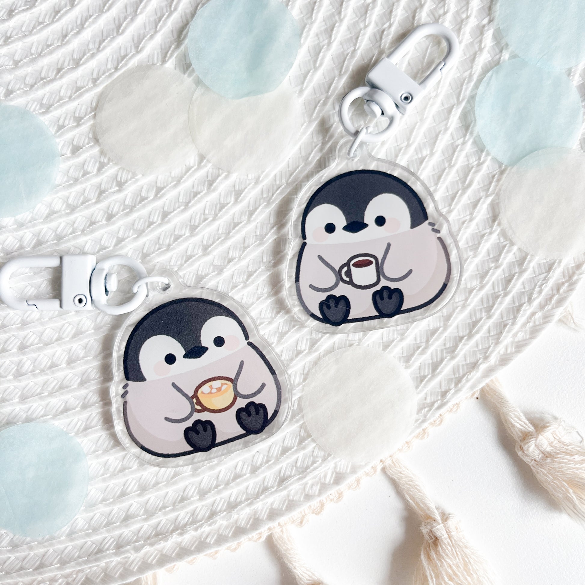 Baby penguin with a cup of hot chocolate/a mug of coffee 🐧 This keychain is double sided and has one design on each side!